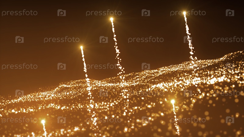 Опасный волновой поток с частицами. Движение. Яркие кометы вылетают из потока волнистых частиц. Опасные ядерные частицы и волнистые энергетические потоки