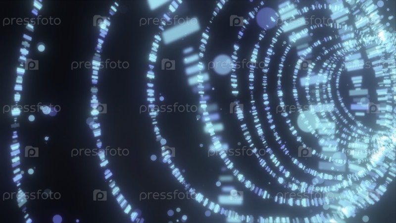 Технологический туннель, футуристический фон.Движение.Летание внутри светящихся колец частиц