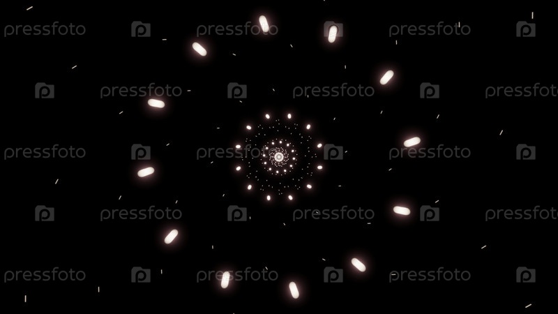 Черный фон. Дизайн. Красные и зеленые фонарики в абстракции, которые улетают в ярких кругах и моделях, а маленькие белые звезды видны сзади. Высокое качество 4k кадры