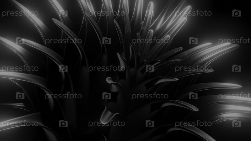Открывающийся 3D цветок. Дизайн. Абстрактный 3d-цвет движется и открывается. Острые листья 3d-цветов перемещаются в цвете
