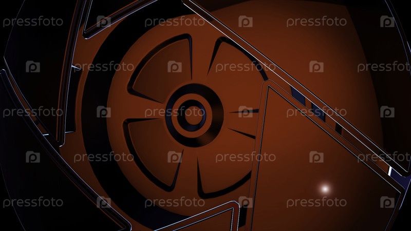 Закрыть для красного симметричного круга, геометрически сформированного вращающимися треугольниками, бесшовная петля. абстрактный механизм, форма треугольника круг деталей вращается на черном фоне