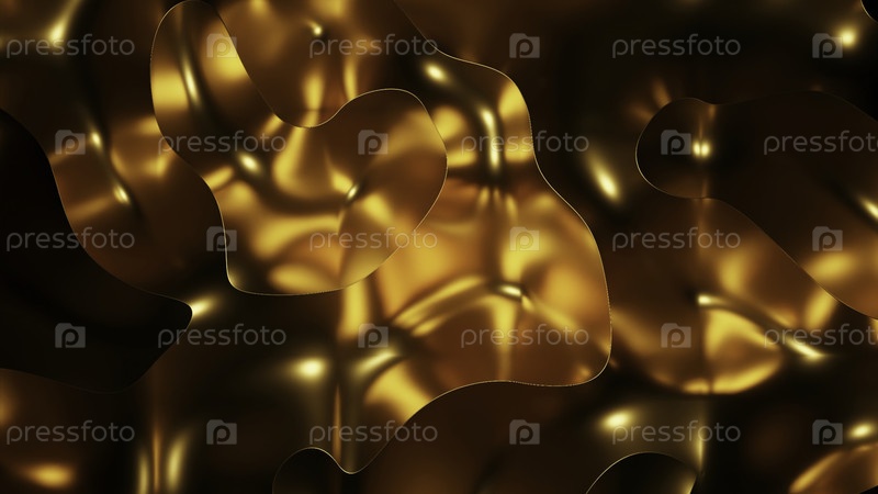 Абстрактная золотая жидкость движется. Дизайн. Золотой металл перемещается по кривым флюидов. Расплавленный металл двигается с золотистым блеском