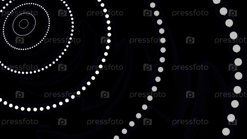 Абстрактные движущиеся концентрические кольца светящихся сфер на темном фоне. Дизайн. Текущие круглые силуэты точек
