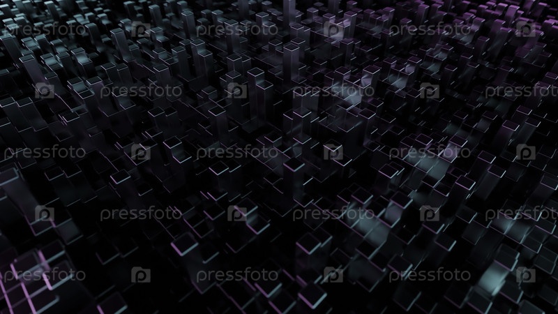 Потрясающий и яркий цифровой пейзаж с многочисленными светящимися кубами, демонстрирующими прекрасные оранжевые и фиолетовые оттенки