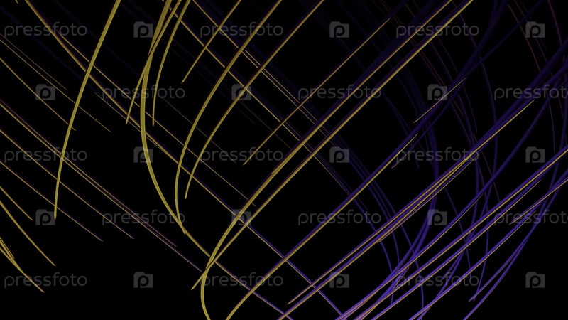 Цветные линии пересекаются. Дизайн. Тонкие линии изгибаются и ткутся на черном фоне. Фонд движущихся и пересекающихся линий