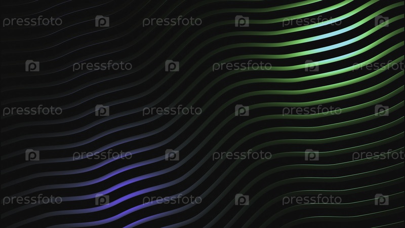 Линии изгибаются в волнах с психоделическим эффектом. Дизайн. Тонкие линии изгибаются в волны на черном фоне. Красивые металлические линии движутся с психоделическим изгибом в пространстве