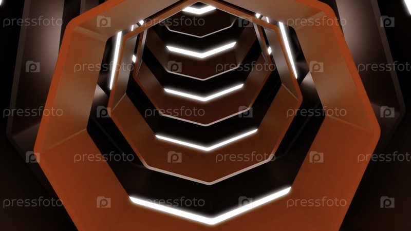 Красный тоннель.Дизайн.Геометрические овалы блестят белой молнией в абстракции и двигаются вперед