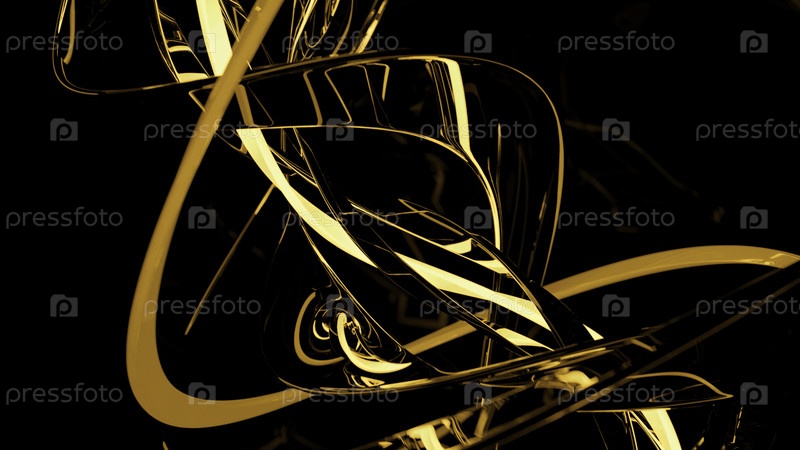 Абстрактный элегантный магический фон с изгибающимися металлическими линиями. Дизайн. Скручивающая сложная 3D-фигура на черном фоне