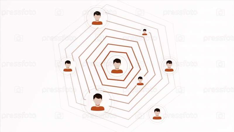 Абстрактные значки людей на белом фоне с движущимся сигналом.Движение.Символы людей и подключение к Интернету