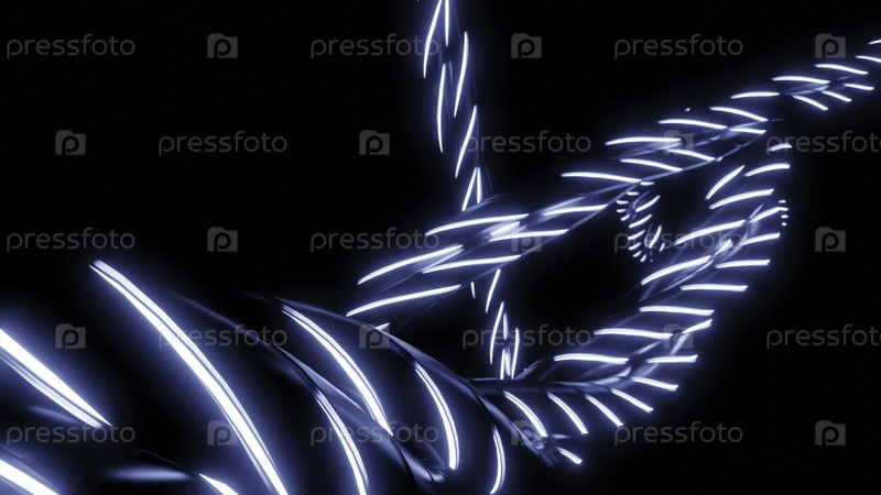 Анимация движущихся неоновых линий в темноте. Дизайн. Линия темных ремней с неонными полосками в темноте. Абстрактные линии с неонными полосками, вращающиеся во мраке