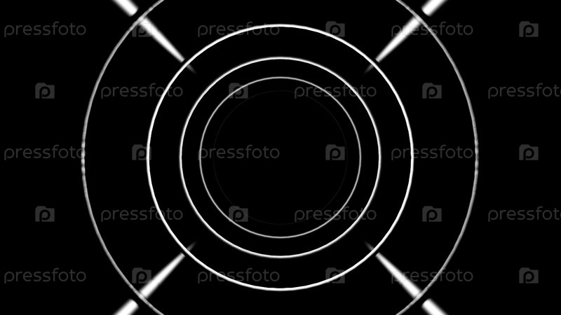 Абстрактный черно-белый туннель, создающий бесконечную перспективу с светящимися кругами и светом