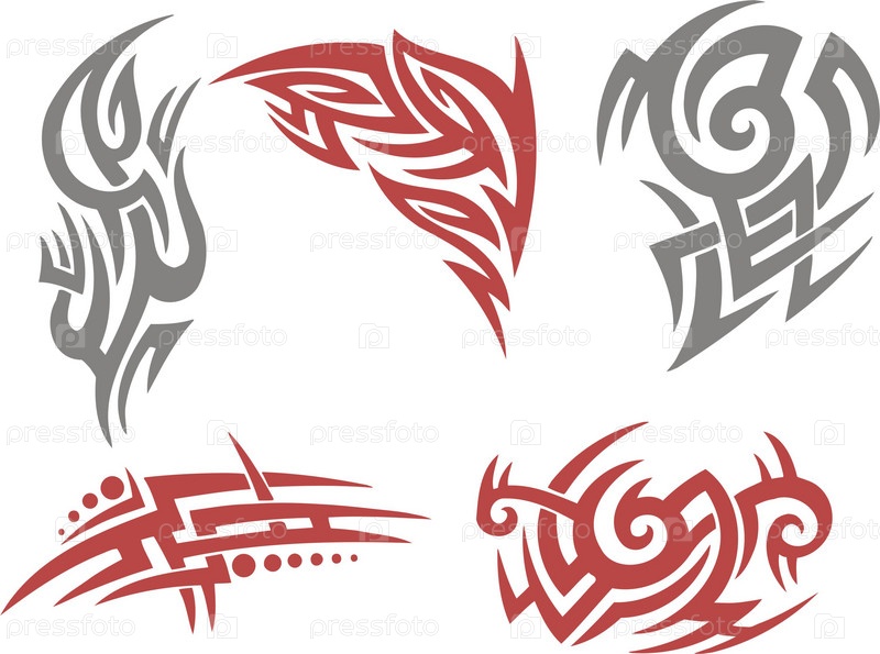 Серо-бордовые татуировки на белом фоне, вектор