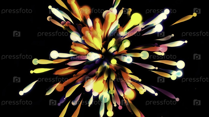 Красочный взрыв абстрактных шаров. Движение. Прекрасный 3D-взрыв длинных шариков. Праздничный 3D-взрыв с шарами на черном фоне