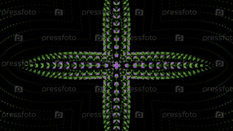 Калейдоскоп волшебных частиц в форме звезды. Дизайн. Блестящие многоцветные частицы, образующие различные объекты