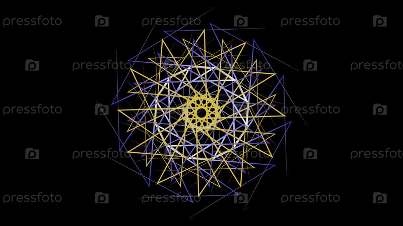 Гипнотический вращающийся рисунок цветных геометрических линий. Сток-анимация. Красочный рисунок изогнутых линий создает эффект калейдоскопа на черном фоне