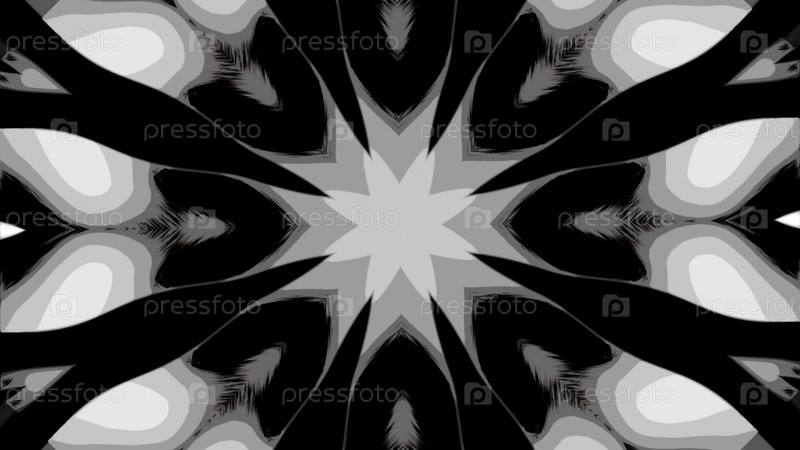 Абстрактные мигающие психоделические формы, похожие на калейдоскоп. Дизайн. Фрактальный вращающийся рисунок на черном фоне