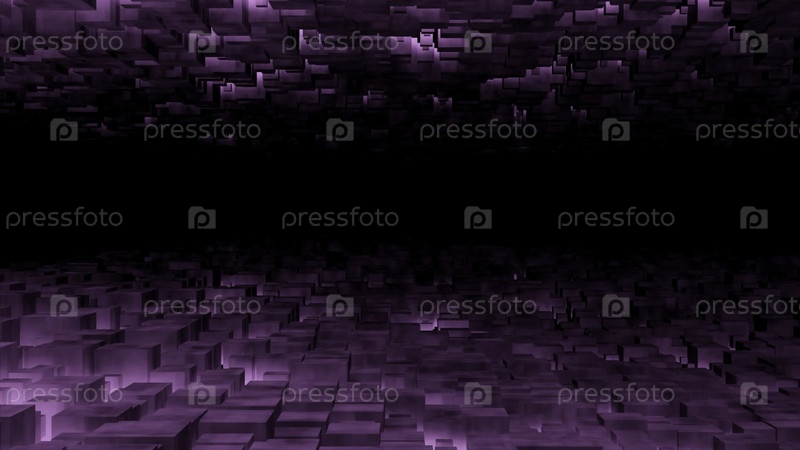 Черный фон с зелеными и фиолетовыми стенами. Дизайн. Движущийся туннель внутрь, созданный в абстракции