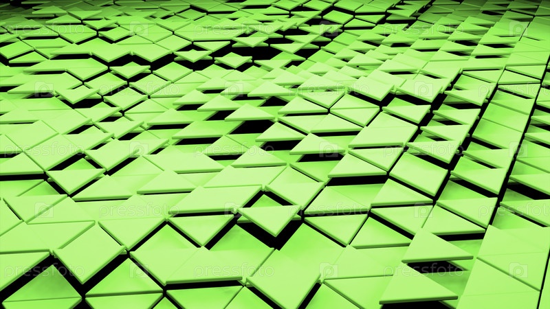 Зеленые маленькие треугольники. Дизайн. Яркие небольшие треугольники, которые поднимаются и опускаются в 3D-формате. Высокое качество 4k кадров