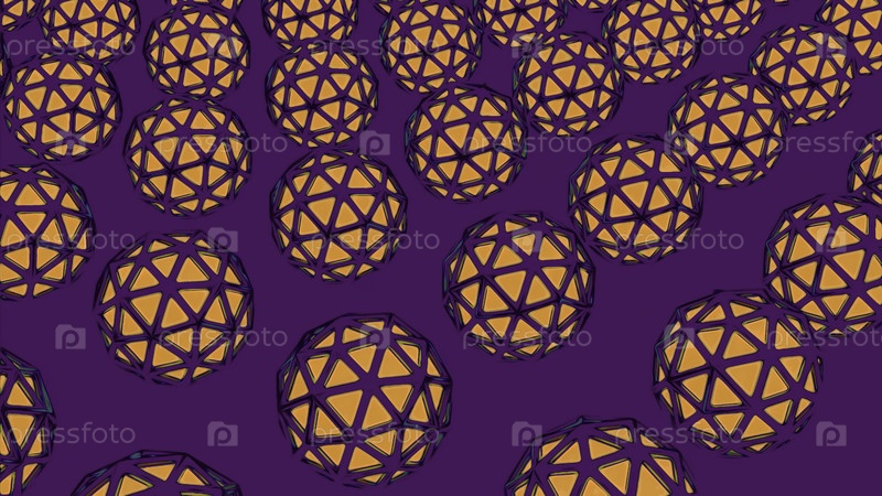 Абстрактное вращение шаров или сфер на фоне контрастного фона. Дизайн. Футуристическое техно движение сфер с текстурой сетки