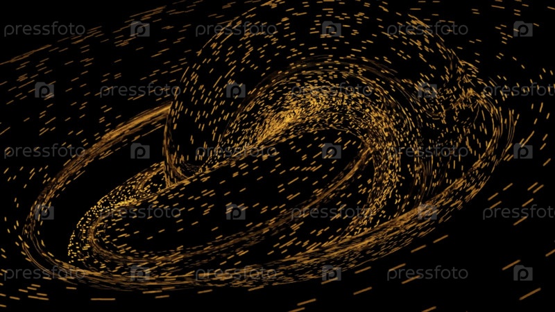 3D-поток частиц, вращающихся в спирали. Дизайн. Цветные частицы движутся в быстро вращающемся потоке. Поток частиц скручивается в 3-мерный узел