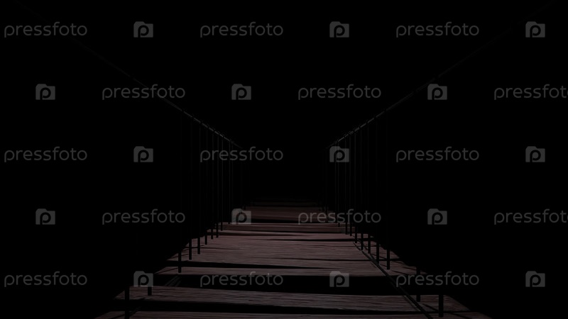 Абстрактный деревянный мост с редкими досками на темном фоне.Дизайн.Мост в никуда к темной, бесконечной дороге жизни