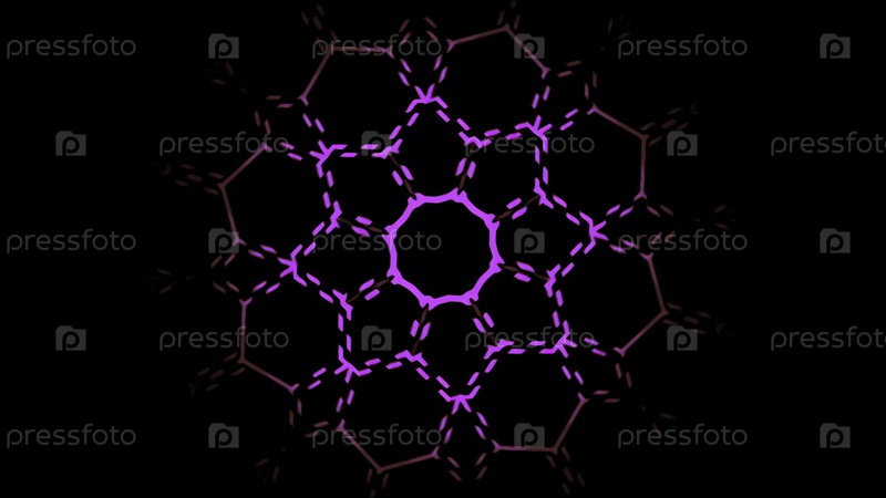 Линии движутся цветочным рисунком на черном фоне. Движение. Цветные линии движутся декоративным рисунком. Электронная анимация движения линий в цветочном рисунке