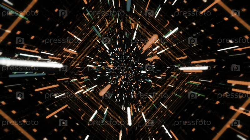 Звездный поток с светящимися полосами в туннеле. Анимация. Киберпространство тоннеля с захватывающим 3D-потоком неоновых линий. Красивый космический туннель из сияющих неонных линий и частиц