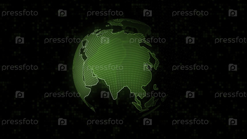 Силуэт Земли в абстракции.Движение.Ярко освещенный силуэт с яркой выделенной территорией, которая вращается вокруг себя на черном фоне