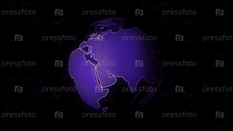 Стилизованная Земля вращается на черном фоне, бесшовный цикл.Движение.Голограмма прозрачной планеты, вращающейся в космическом пространстве