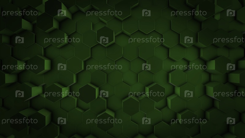 Сверху вид абстрактных шестиугольных стержней, движущихся вверх и вниз хаотично, бесшовная петля.Зеленые геометрические фигуры складываются рядами