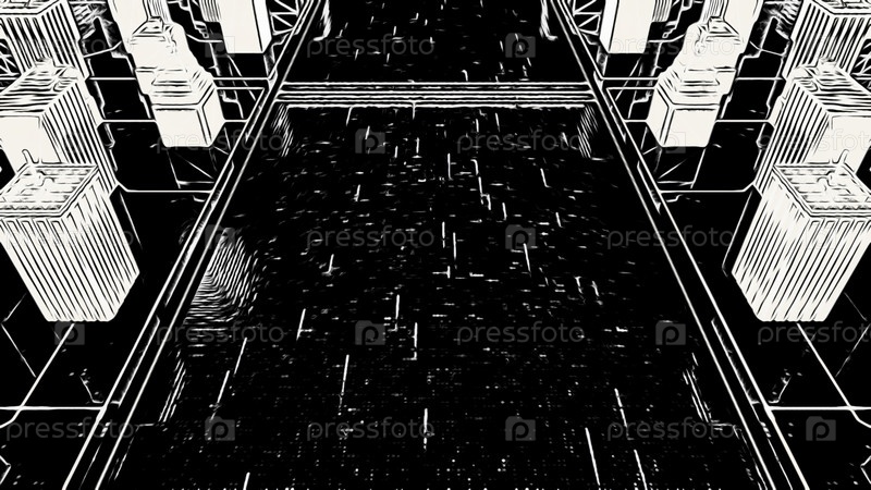 3D-макет большого города.Анимация.Визуализация зданий и улиц города