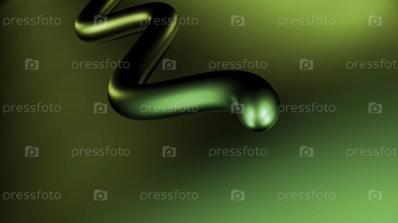 Абстрактная движущаяся металлическая змея зеленого цвета. Дизайн. Согнутая 3D-полоса, волнистая линия