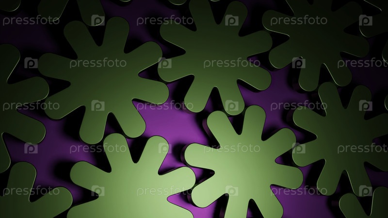 Фиолетовые и голубые цветочные формы. дизайн. вращающиеся механизмы, сделанные в мультфильмовой абстракции