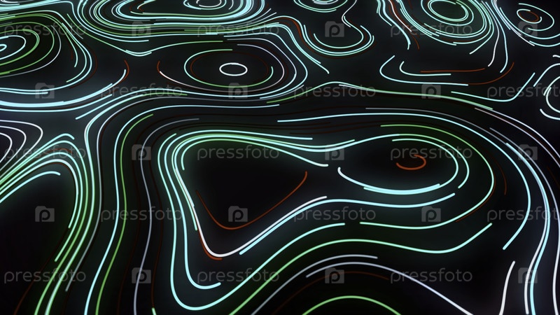 Абстрактная визуализация силуэтов вакуол путем перемещения узких линий неона на черном фоне. движение. концепция науки микробиологии