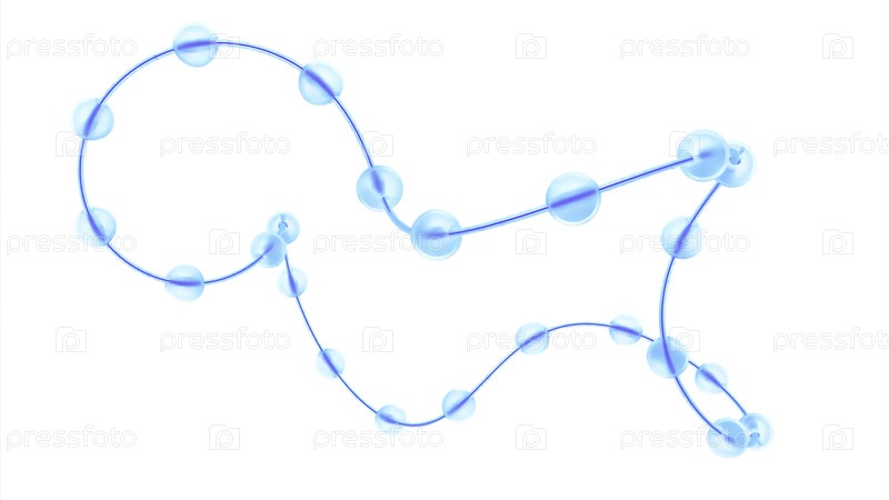 Абстрактная изогнутая линия с красочными неоновыми освещенными сферами. Дизайн. Прозрачные шары, быстро бегущие вдоль струны
