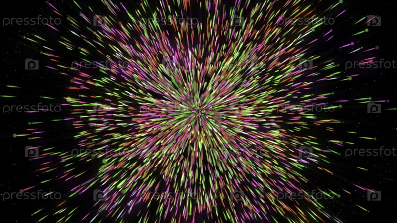 Гиперпространство прыгает сквозь звезды в далекое пространство.Движение.Путешествие через звездное поле, полет чрезвычайно быстрым, перепрыгивание через червоточину до конца туннеля в космосе