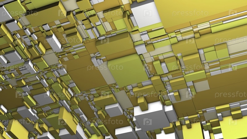 Фонд со многими разными квадратами. Движение. 3D-поверхность с большим количеством квадратов и кубов. Фон с движущимся узором квадратов