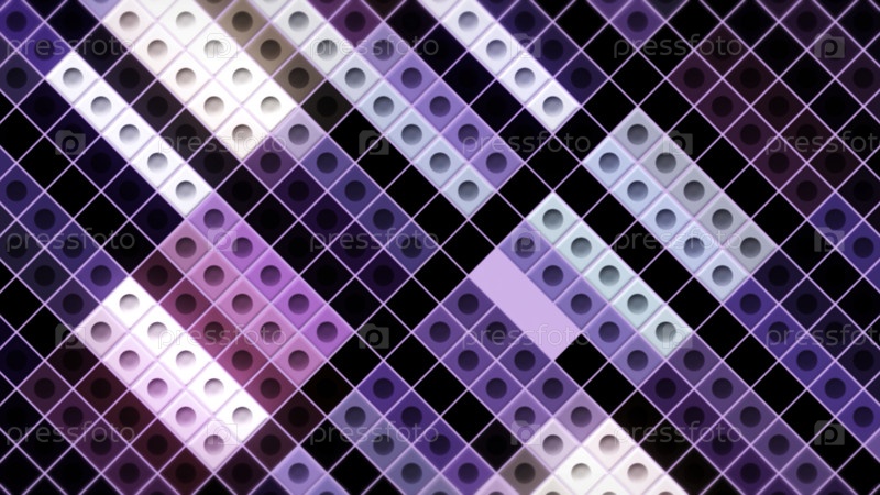 Розовые и фиолетовые кубические фигуры на черном фоне, бесшовная петля.Движение.Абстрактная визуализация старинной компьютерной игры