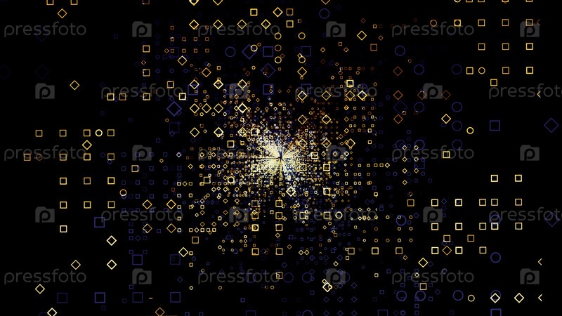 Движение футуристических небольших квадратов в цифровом виртуальном пространстве. дизайн. катание технологического 3D-пространства с квадратными силуэтами