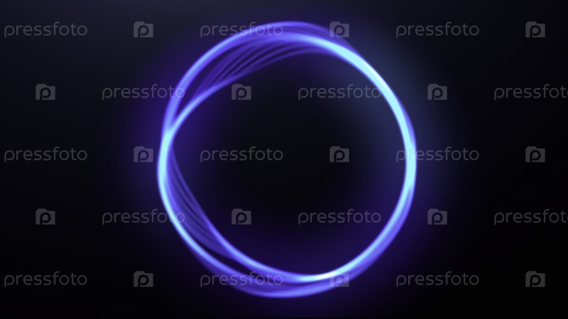 Черный фон. движение. яркое неоновое кольцо в анимации, которое перемещается друг от друга в разных направлениях и рисует узоры с помощью ярких лучей. высококачественное видео 4k