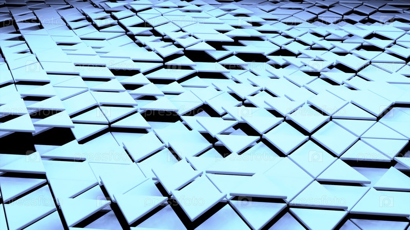 Фон треугольников, абстрактный фон, бесшовная петля. Дизайн. Трансформирующаяся поверхность голубых плиток