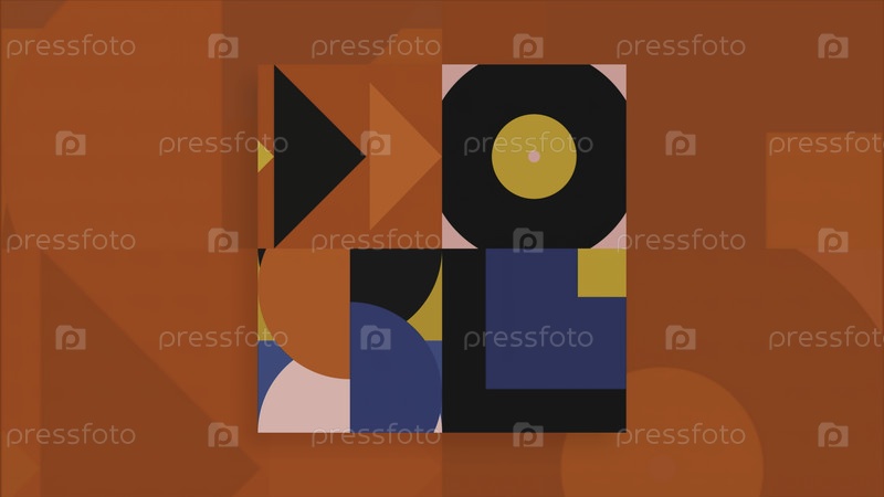 Геометрическая ретро-анимация с движущимися фигурами. Движение. Красочная абстракция с геометрическими формами. Цветные круги, квадраты и треугольники в ретро-анимации