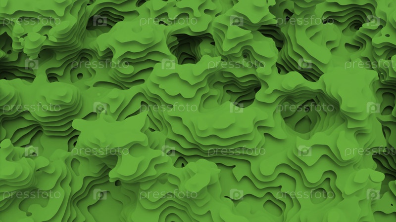Ярко-зеленый фон.Дизайн.Абстракция, в которой яркие пятна стираются и создают различные узоры в 3D