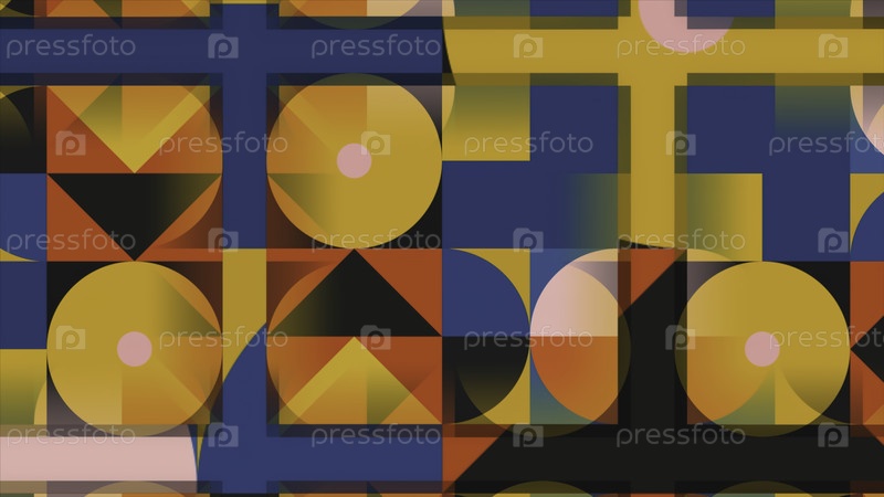 Красочный геометрический рисунок с движущимися фигурами в квадрате. Движение. Прекрасный красочный рисунок геометрических форм. Геометрические цветные фигуры в ретро-стиле