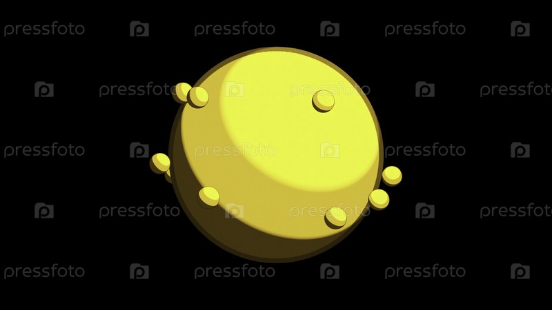 Бесшовное петлевое движение электронов вокруг сферического яркого ядра атома.Дизайн.Концепция биологии или химической науки