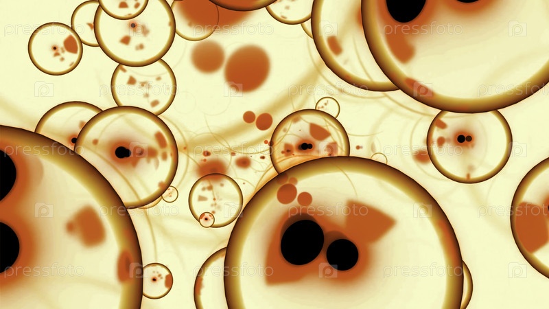 Движение молекулярных пузырей с эмбрионами. Дизайн. Пузыри с инфекцией перемещаются в течении тела. Анимация движения заряженных молекул в пространстве