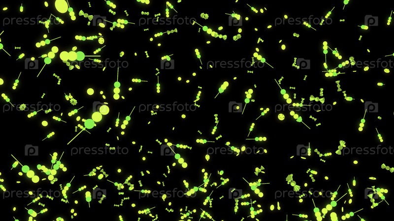 Черный фон.Дизайн.Зеленые и белые частицы небольшого размера в анимации летают на высокой скорости снизу наверх