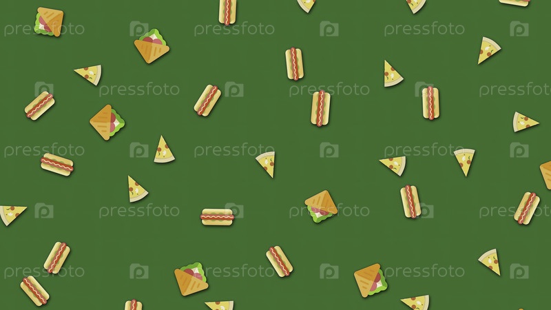 Анимационный фон с повторяющимся образцом пищи на зеленом фоне. анимация. красивая мультфильмовая анимация с вибрирующими повторными рисунками еды