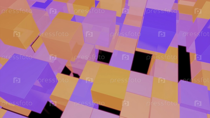 Объемные скачущие квадраты. Дизайн. Быстротанцующие квадраты разных цветов на черном фоне в абстракции. Высокое качество 4k кадры