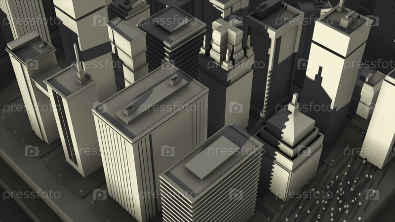 Абстрактная анимация 3D архитектурной модели большого современного центра города на белом фоне.Простая 3D-анимация, сделанная в 4K